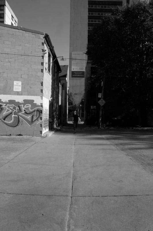 This piece repeats history in two ways- first, with its obvious reference to the past: the source material is clearly instrumental in the creation of this series. Second, each image (like Divola’s) repeats the same story; that failed attempt to negotiate a physical gap in ten seconds. Moving from one image to another, there is a vague hope, an urge, to see that somehow the next frame will record SUCCESS, yet none do. Where Divola’s work is shaded by emancipation (it records an escape, and each frame details his success), this piece presents a sort of inevitability to impossibility- that is, the failure to reach the camera in time. Both pieces bring to mind ideas of captivity and escape, with each artist ultimately captured by the lens, regardless of direction. A struggle many photographers deal with is the urge, or lack thereof, to continue making images, and this piece considers both sides.