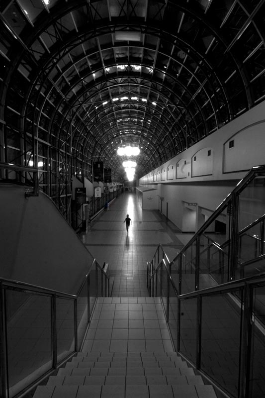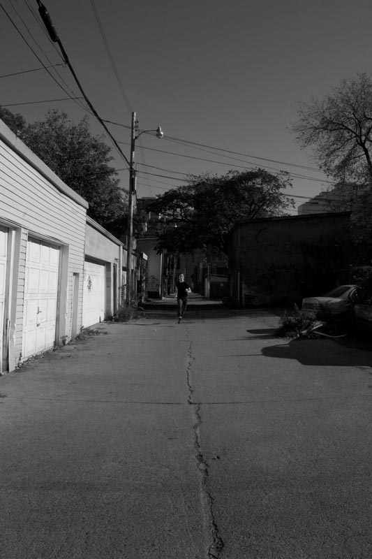 This piece repeats history in two ways- first, with its obvious reference to the past: the source material is clearly instrumental in the creation of this series. Second, each image (like Divola’s) repeats the same story; that failed attempt to negotiate a physical gap in ten seconds. Moving from one image to another, there is a vague hope, an urge, to see that somehow the next frame will record SUCCESS, yet none do. Where Divola’s work is shaded by emancipation (it records an escape, and each frame details his success), this piece presents a sort of inevitability to impossibility- that is, the failure to reach the camera in time. Both pieces bring to mind ideas of captivity and escape, with each artist ultimately captured by the lens, regardless of direction. A struggle many photographers deal with is the urge, or lack thereof, to continue making images, and this piece considers both sides.