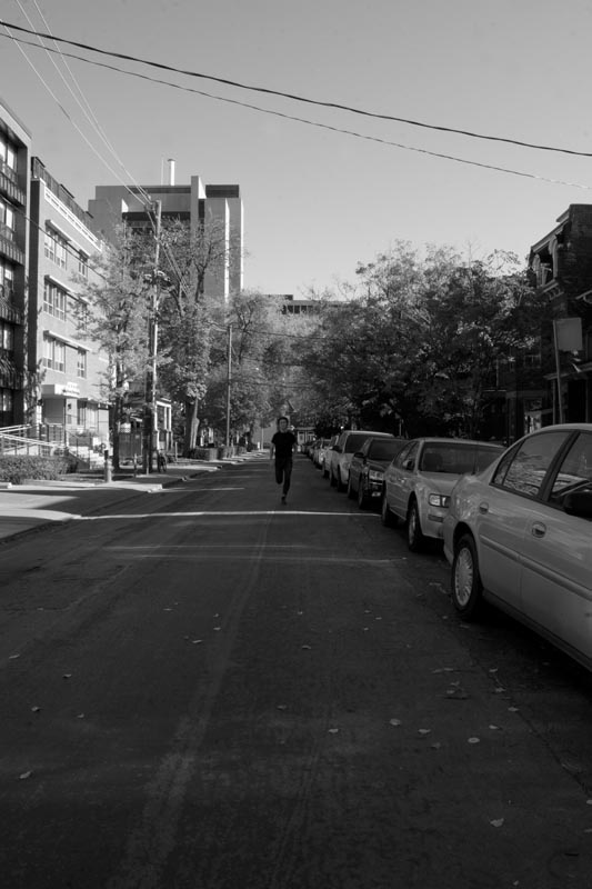 Based directly on John Divola’s As Far As I Could Get, this series presents an inversion of the original by running towards the camera (as opposed to away from it). The distance I ran is based (approximately) off the length of my camera’s self-timer (ten seconds) in relation to the longest distance that can be run in that amount of time (approximated to one hundred metres, and based off records). Obviously, the chances of reaching the camera are very low, and so similarly to Divola’s work, the series presents a failing: here, the impossibility of reaching the camera is considered (while Divola’s deals with the impossibility of escaping the camera’s ‘eye’). The images, recorded digitally, are edited to more closely resemble those that they are based on.